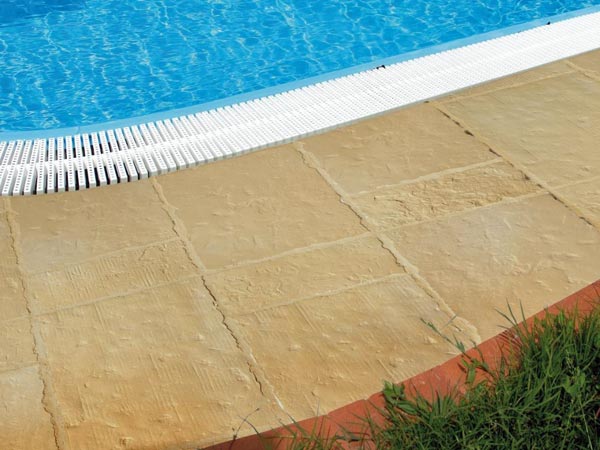 Questa specifica tipologia di lavorazione è particolarmente indicata per la realizzazione di solarium, marciapiedi, piazzali e viali esterni.